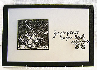 On another white card, I stamped a black snowflake.
