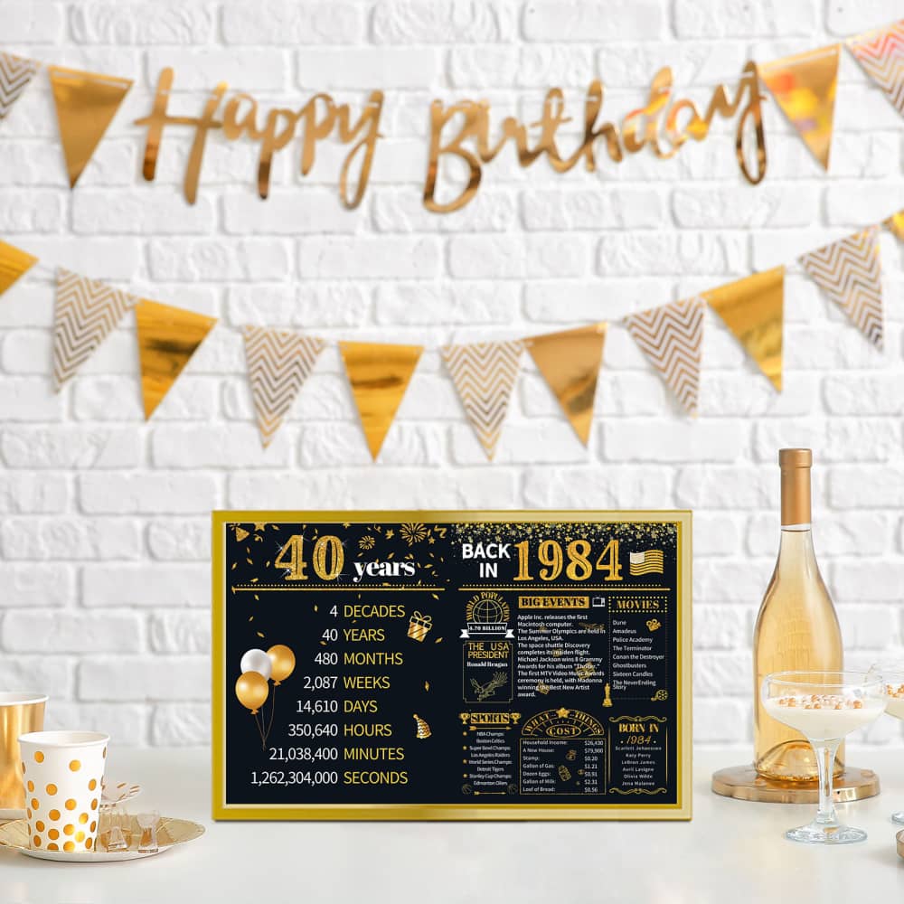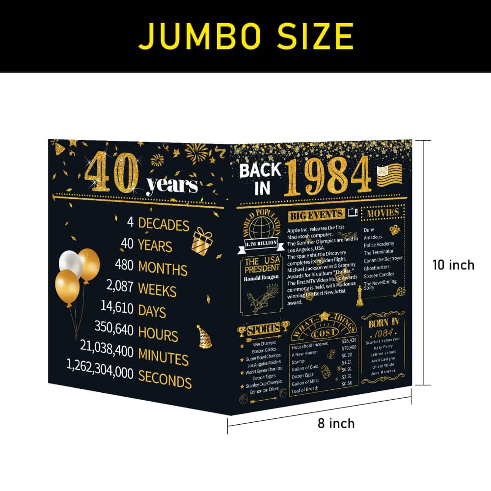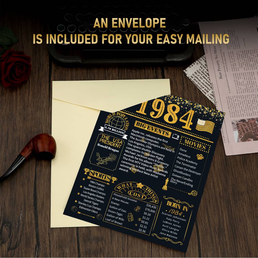 Take a look back in 1984, celebrate a milestone birthday/anniversary with this card brimming full of fun facts from 1984. It’s also a perfect gift or decoration for 40th birthday party, wedding anniversary or class reunion.