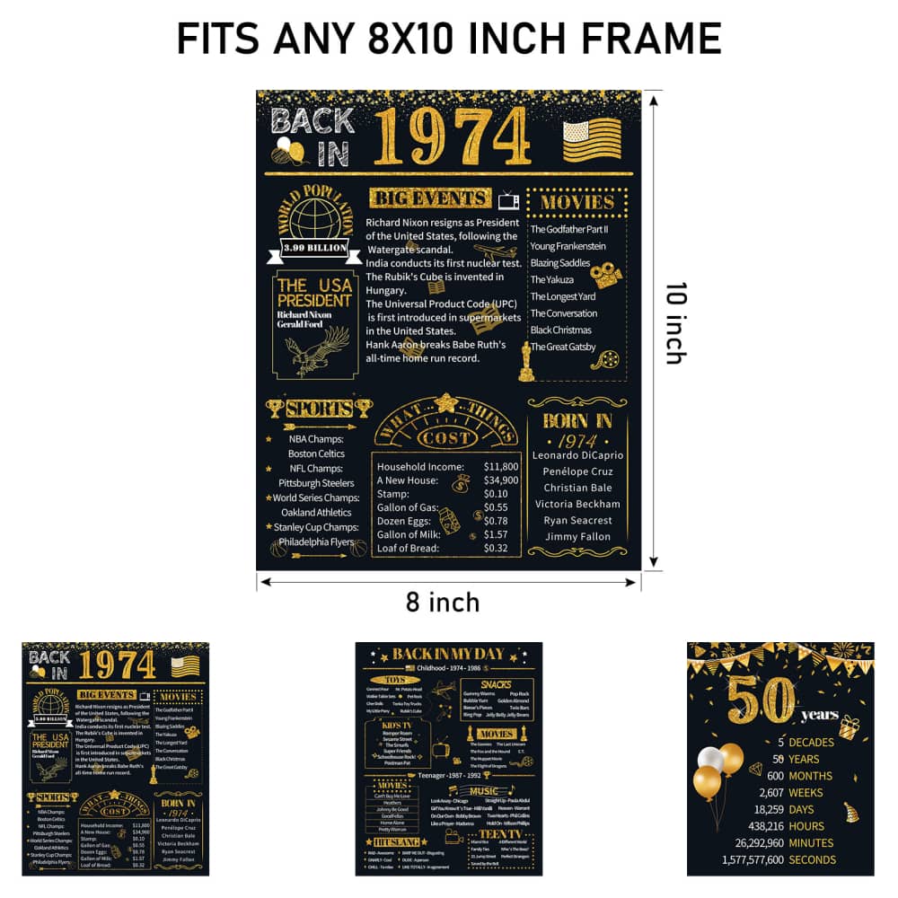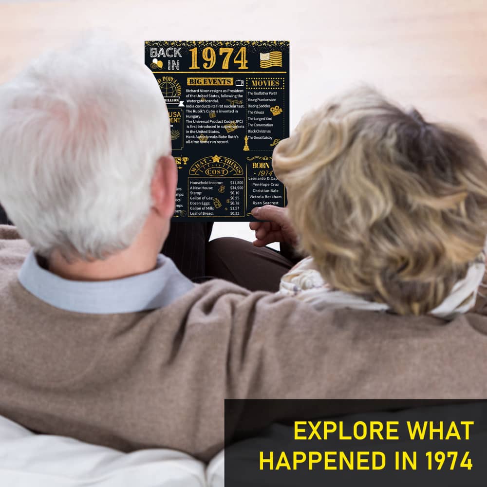 Take a look back in 1974, celebrate a milestone birthday/anniversary with this poster brimming full of fun facts from 1974. It’s also a perfect gift or decoration for 50th birthday party, wedding anniversary or class reunion.