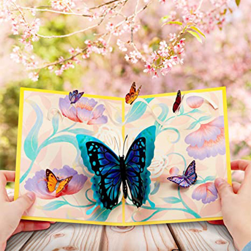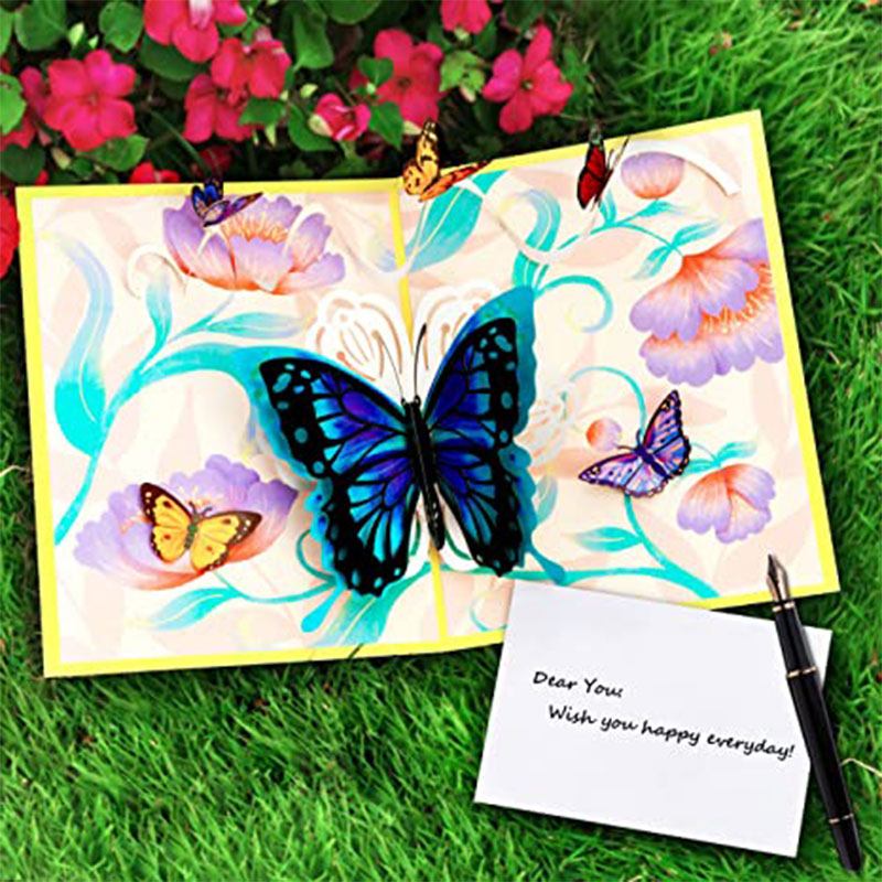 【Splendid Design】:This pop up card features a three-dimensional intricate butterfly and floral design. Beautiful butterflies landing on the flowers design shows a vivid natural scene. It will definitely give the recipient a magical touch when this butterfly card pops up.