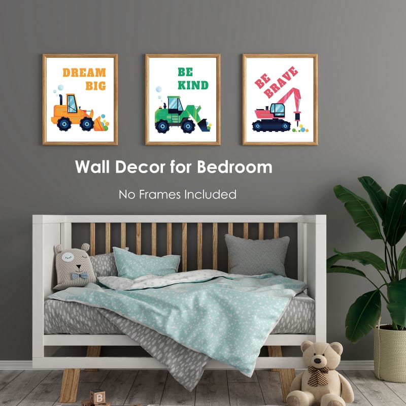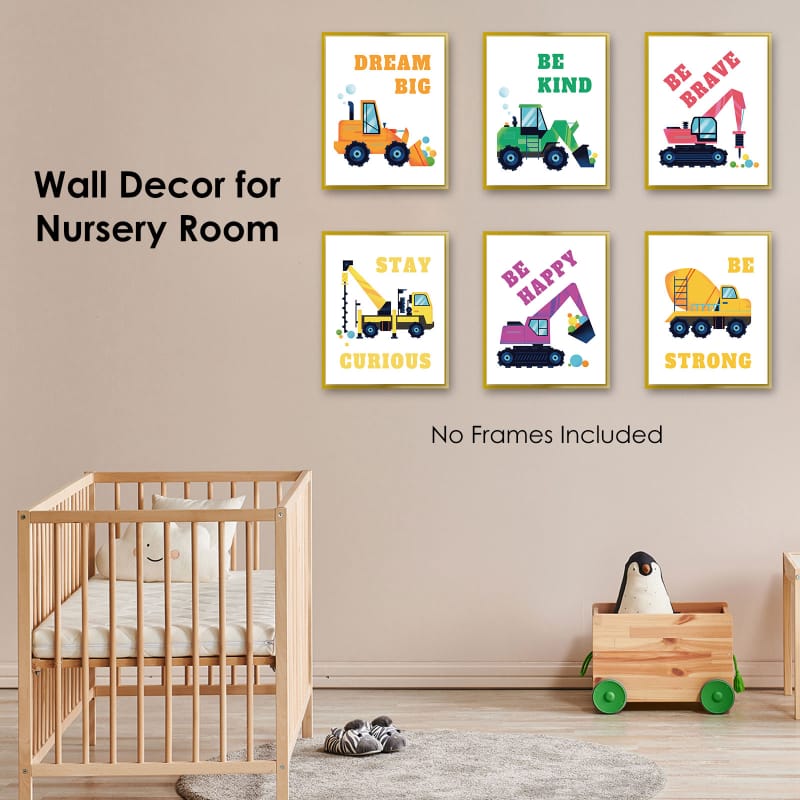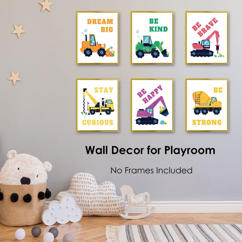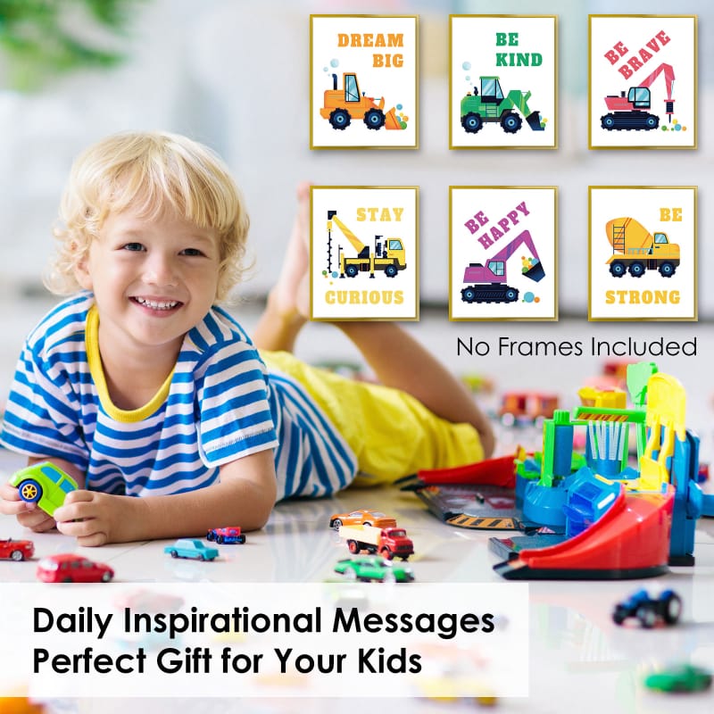 Boys room wall posters feature 6 classic construction vehicle designs, along with 6 positive messages. These colorful paintings can stimulate children’s creativity and imagination, while also bringing a lot of smiles and energy to the kids’ room.