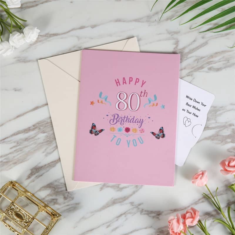 【Package Included】: This 80th birthday greeting card measures 6×8 inch when folded flat. Comes with an envelope, a birthday pop up card and a little note card. You can write down your own heartfelt or great wishes, the recipient would cherish this memorable gift very much.