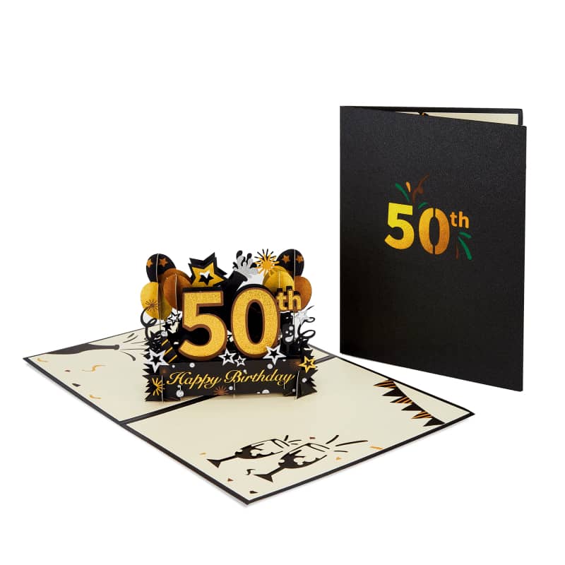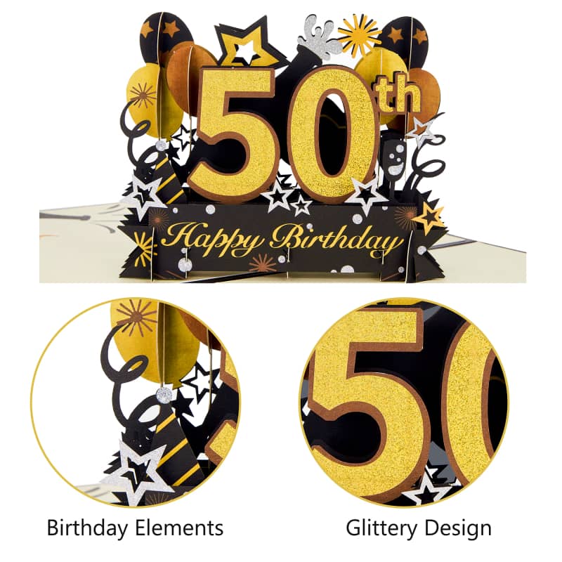 【Package Included】: This 50th birthday greeting card measures 6×8 inch when folded flat. Comes with a pop up card, an envelope and a blank note card. You can write down your own heartfelt or great wishes, the recipient would cherish this memorable gift very much.