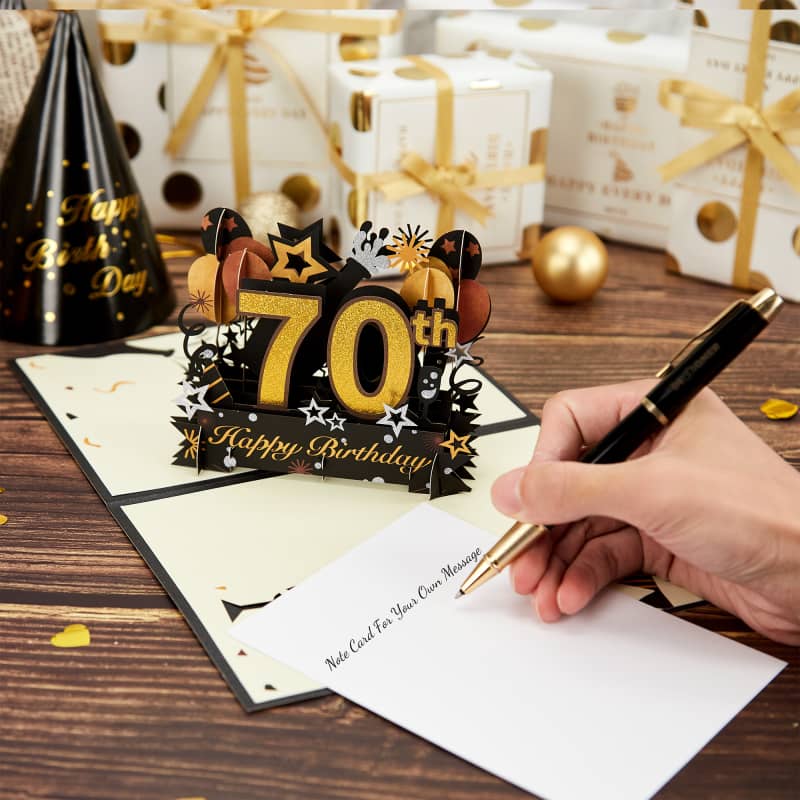 【Package Included】: This 70th birthday greeting card measures 6×8 inch when folded flat. Comes with a pop up card, an envelope and a blank note card. You can write down your own heartfelt or great wishes, the recipient would cherish this memorable gift very much.