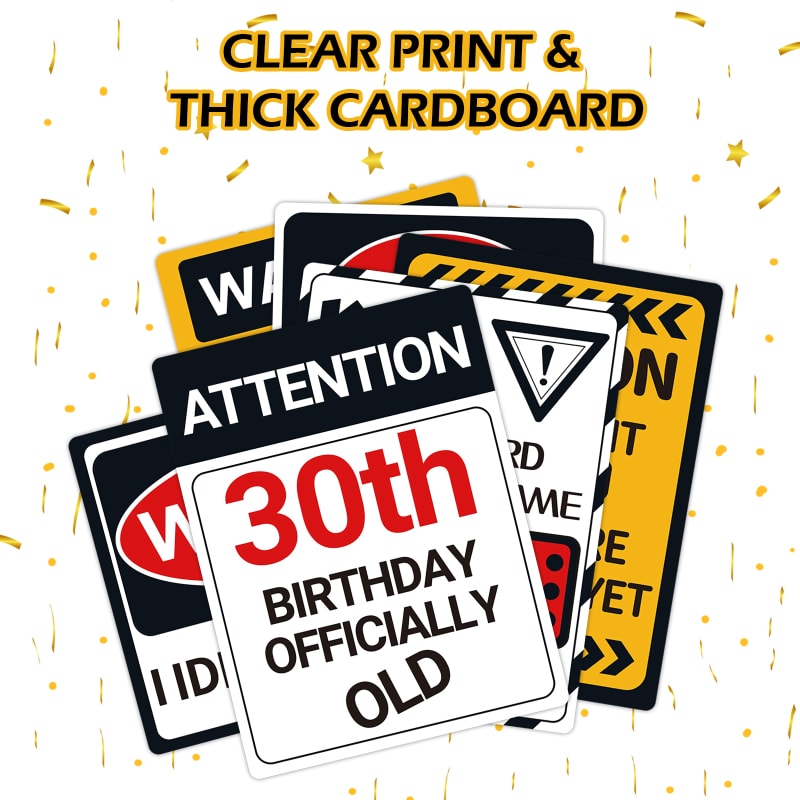 【FUNNY PARTY SIGNS】: Our 30th birthday decorations, boasting a delightful fusion of funny designs and vibrant colors. These large and bright party supplies are sure to spark joy and laughter among guests.