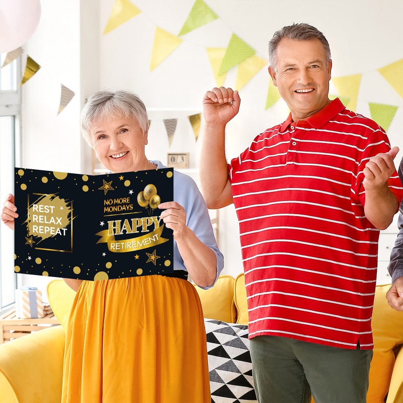 【Size & Quality】: Our happy retirement card measures 21.6 x 13.8 inch(unfolded), made of high quality paper cardboard and surface laminated.