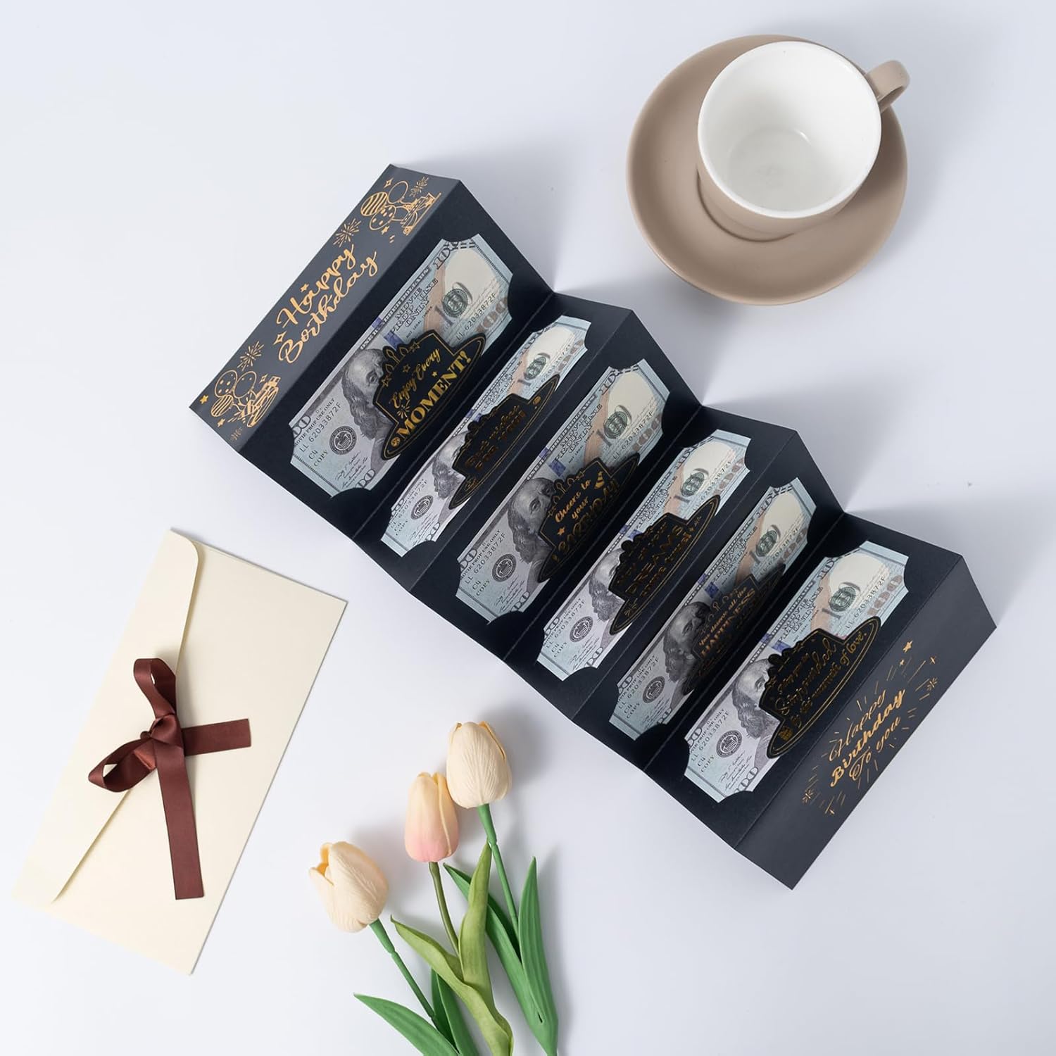 This card with 6 slots for cash, you can put your money in the card. Imagine your family or friends open this surprise card at the party, they will find the unexpected treasure tucked within, which will leave them a deep impression!