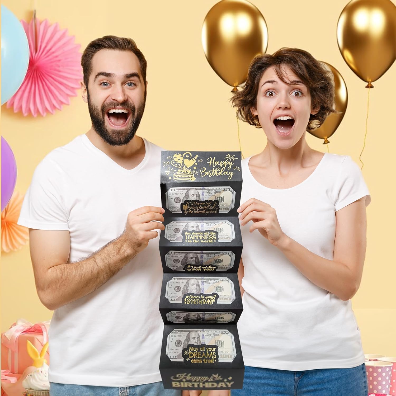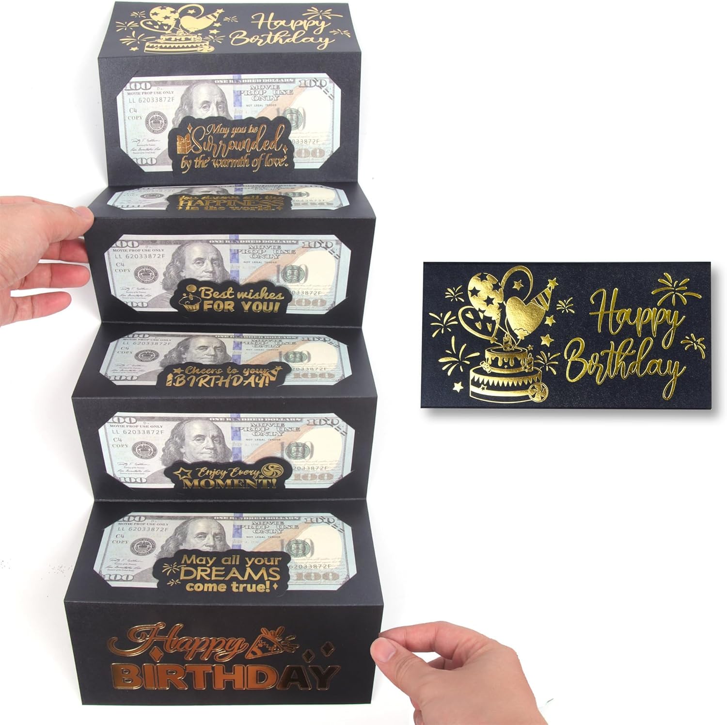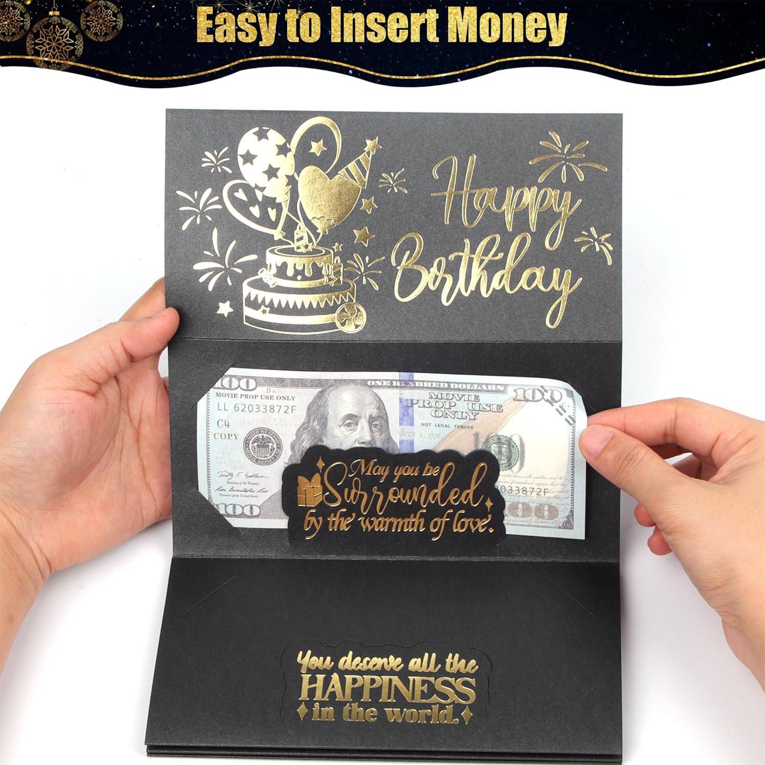 HOMANGA Birthday Money Envelope for Cash Gifts, Surprise Cash Envelope for Men Women Kids, Birthday Gift Card for Men Women Girls Boys, Black Gold Money Holder