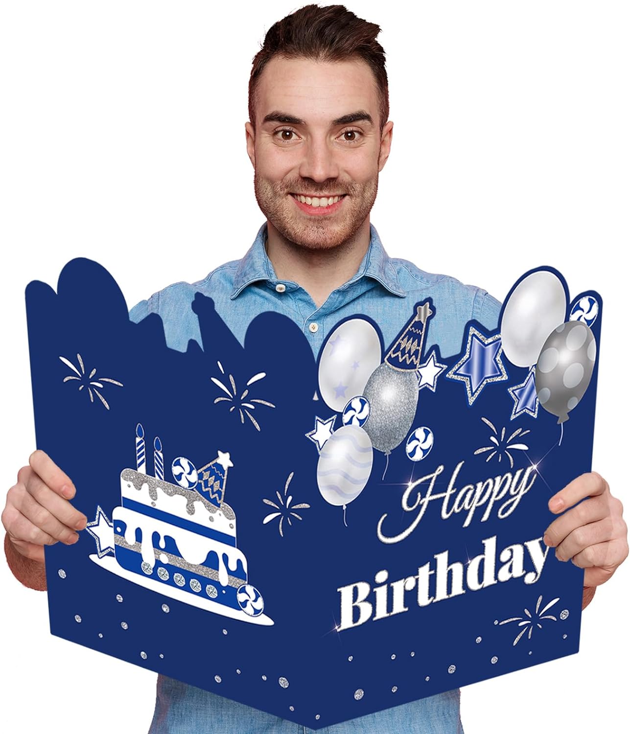 HOMANGA Giant Birthday Card, Jumbo happy Birthday Card for Men Women Colleague, Large Birthday Guest Book with Envelope, Blue Silver Big Birthday Card 14×22 inches