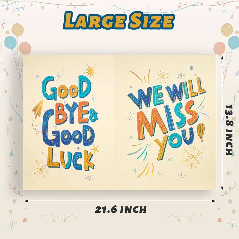 【Size & Quality】: Our farewell greeting card measures 21.6 x 13.8 inch(unfolded), made of high quality paper cardboard and surface laminated.